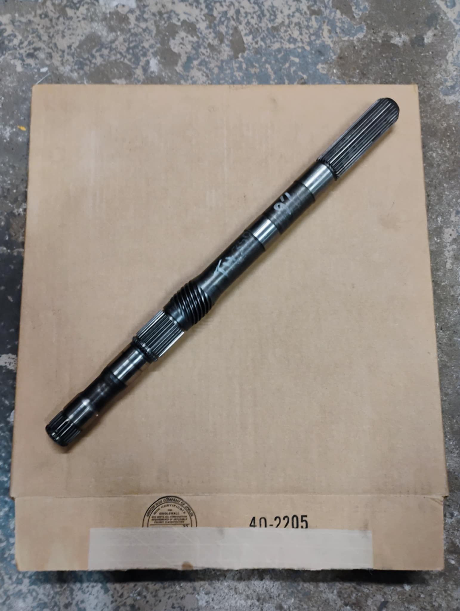 Output shaft, turbo 350 transmission, 9 inch, Chevy, 18 1/2 inch, OEM, used