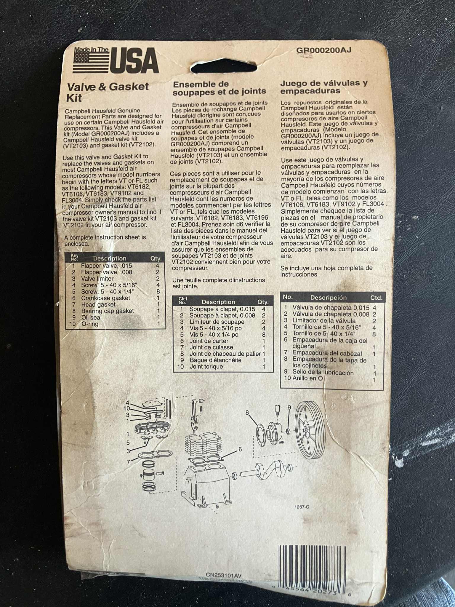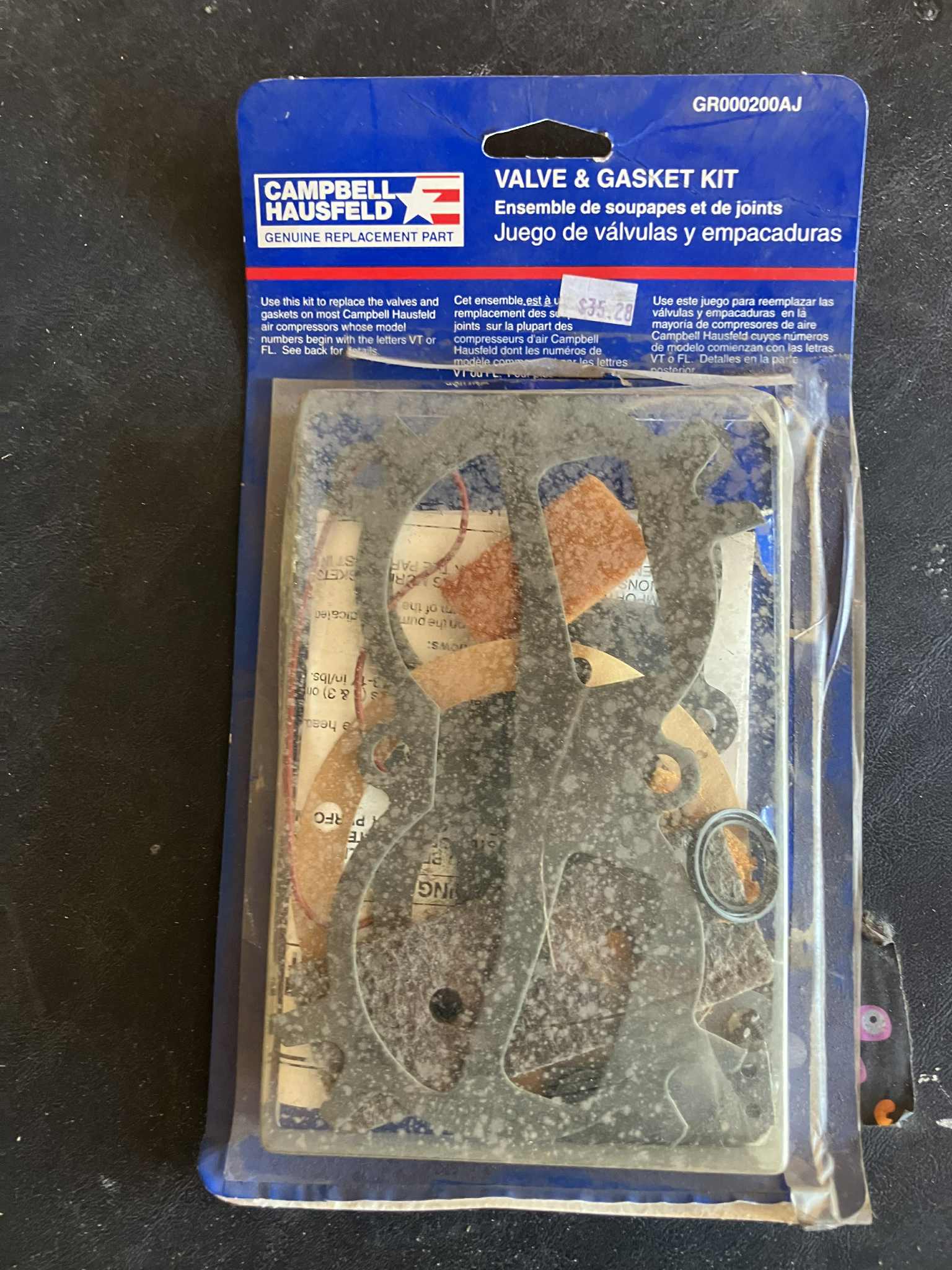 Valve and gasket kit, Campbell Hausfeld, #GR000200AJ, new, old stock, $35