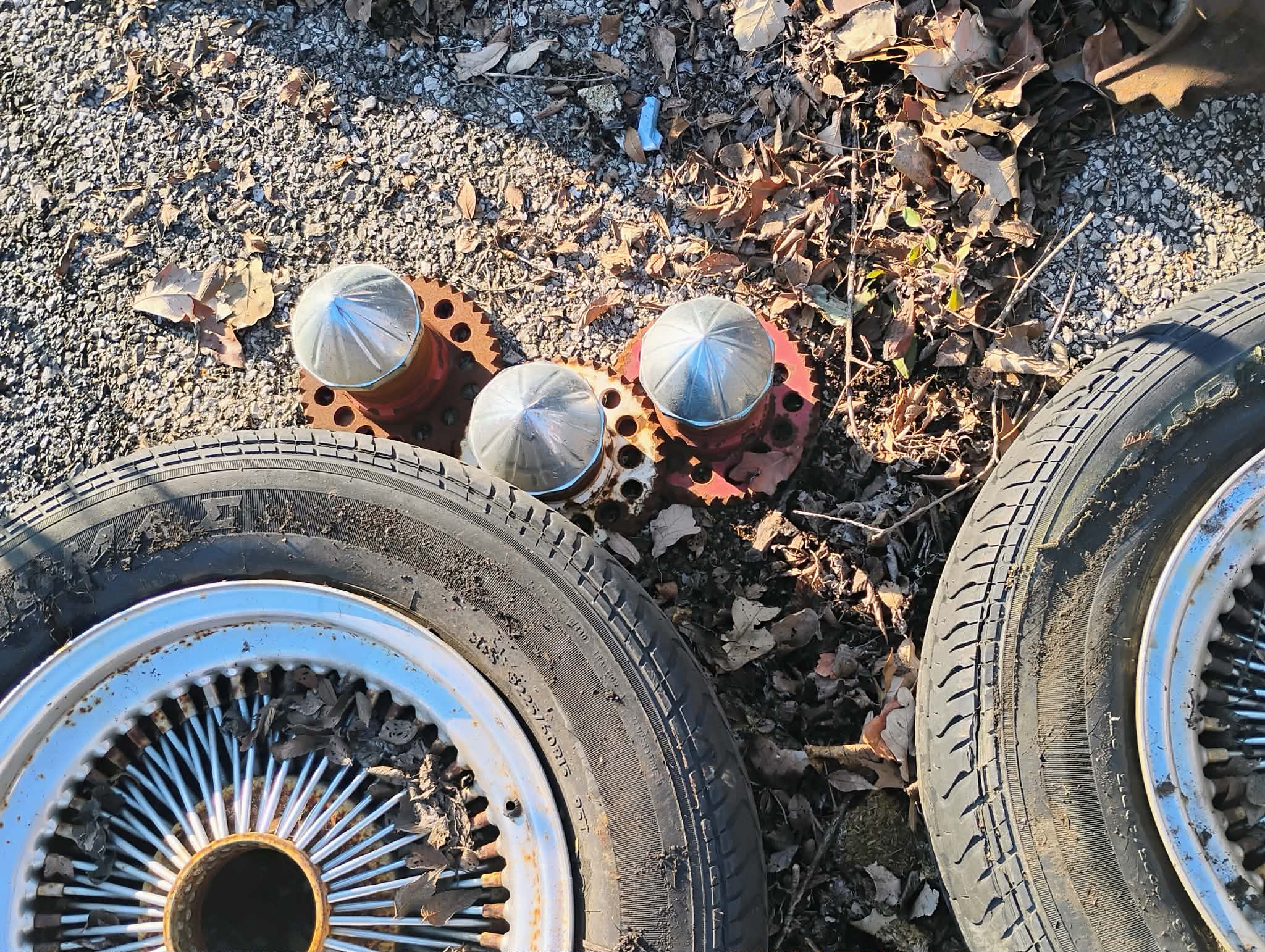 Wire wheels, 15 inch, with adaptors, set of 4, missing one cone, universal, used, $300