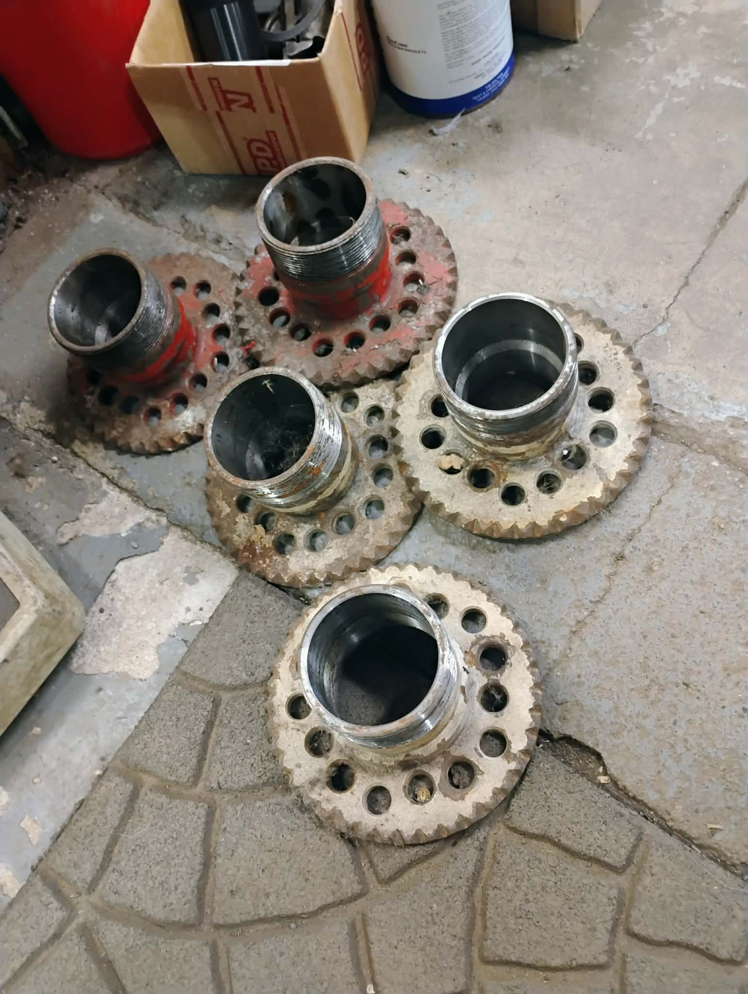 Wire wheels, 15 inch, with adaptors, set of 4, missing one cone, universal, used